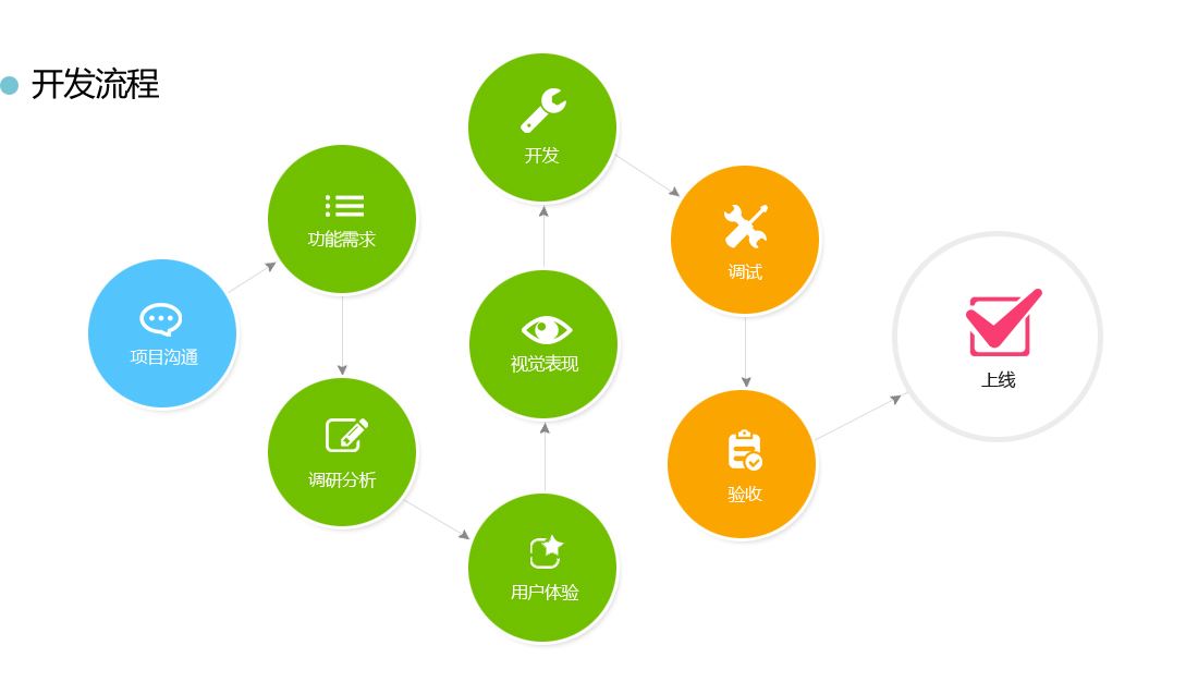 程序的開發流程:1.前端切頁面,做好靜態頁 2.后端工程師做好項目所需要的動能 3.雙方進行接口的對接 4.進行三方的接入(微信,支付寶等)5.定期溝通項目開發的進展,開發完成后進入了測試階段,需要用多個平臺和 各種不同的機器進行測試,對BUG進行調試。直到測試合格確定沒有BUG后與客戶溝通,開始驗收,最后再讓客戶測試以后 ,提出他的修改意見。