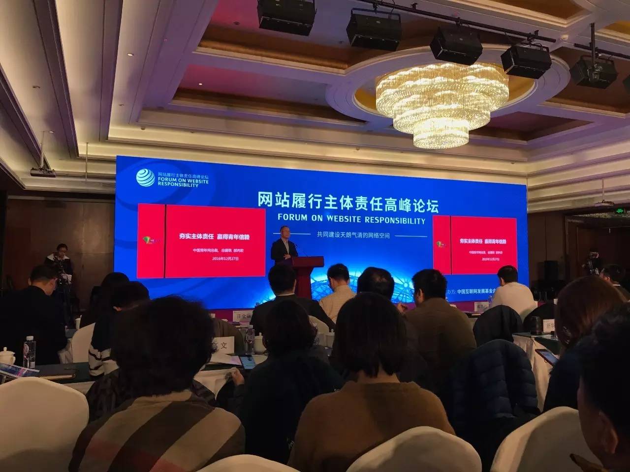 12月27日,由中國互聯網發展基金會和中國傳媒大學主辦的網站履行主體責任高峰論壇在京舉行。圖為論壇現場。