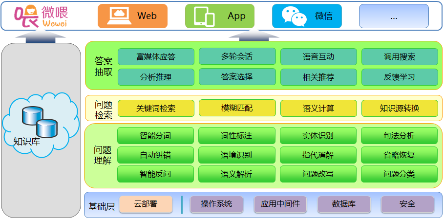 基于在政府、企業、金融等行業的多年行業經驗積累,中聯科技采用多種人工智能技術,專門針對政府、企業、金融等特定領域,成功開發出微喂智能機器人系統。系統支持自然語言人機交互,支持面向互聯網、微信、移動APP等全渠道,支持語音識別和語音合成等技術。